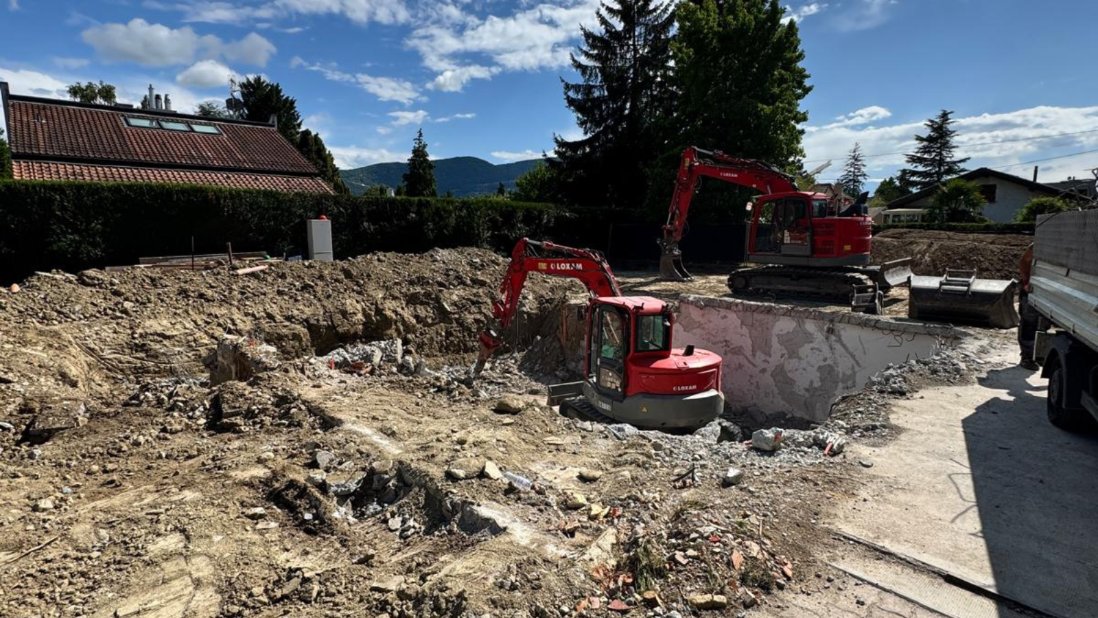 Projet à Genève – Mandat confié à notre entreprise pour la réalisation des travaux spéciaux, terrassement et maçonnerie, incluant la réalisation d’ouvrages en béton armé, la préparation des fondations et la mise en sécurité des parois.